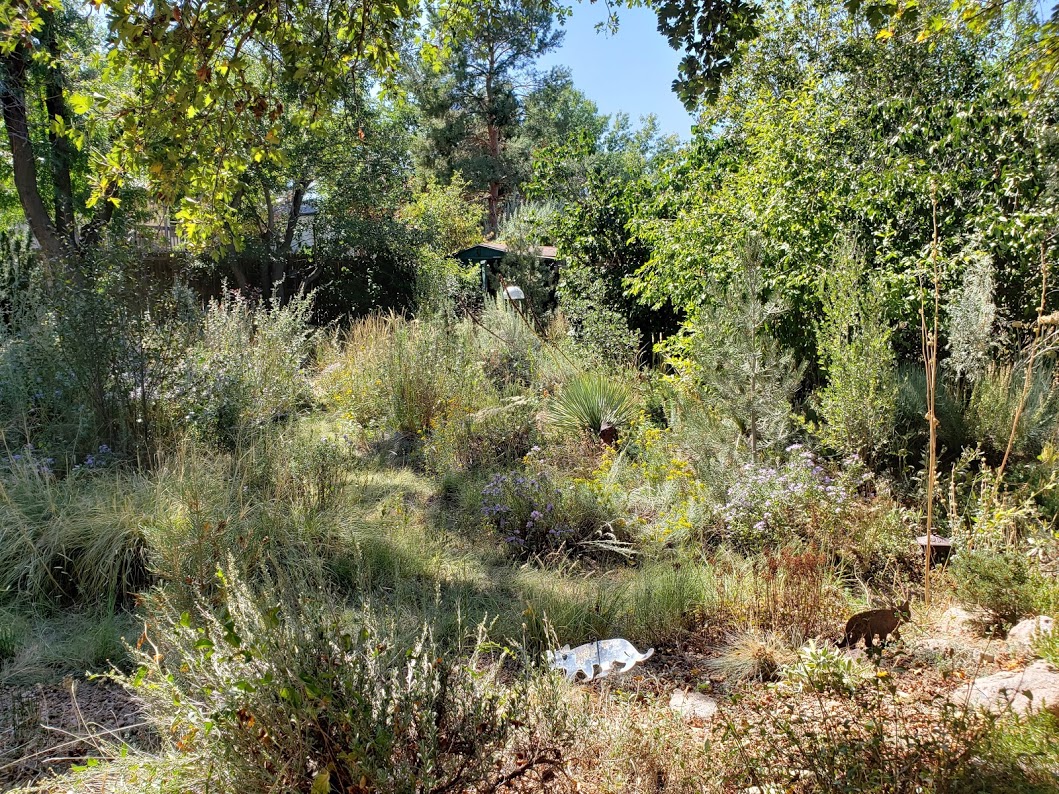 The garden there probably gets enough water for the native plants that used to live there. Are blue spruce happy to grow wild there. Does the owl live in a spruce?