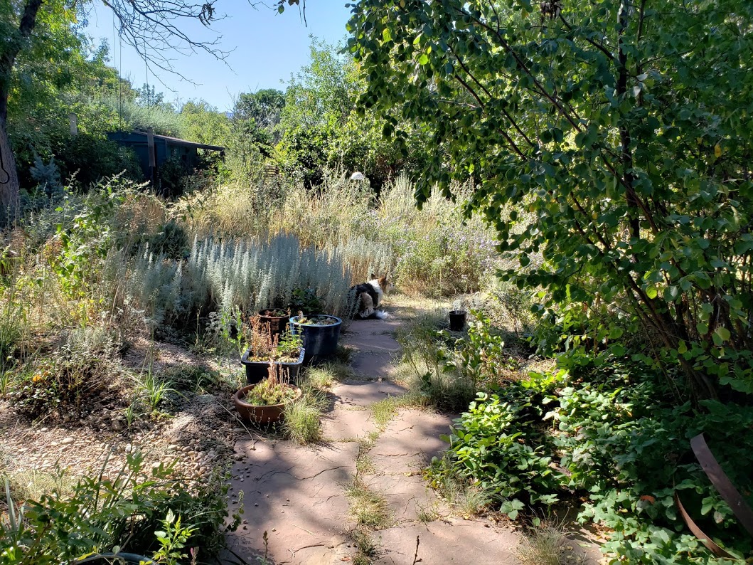 The guy I live with really liked the little conifer, which was about twelve feet tall, but the garden became too dry for it. So that was that. You can see the stump right at the bottom of this picture.