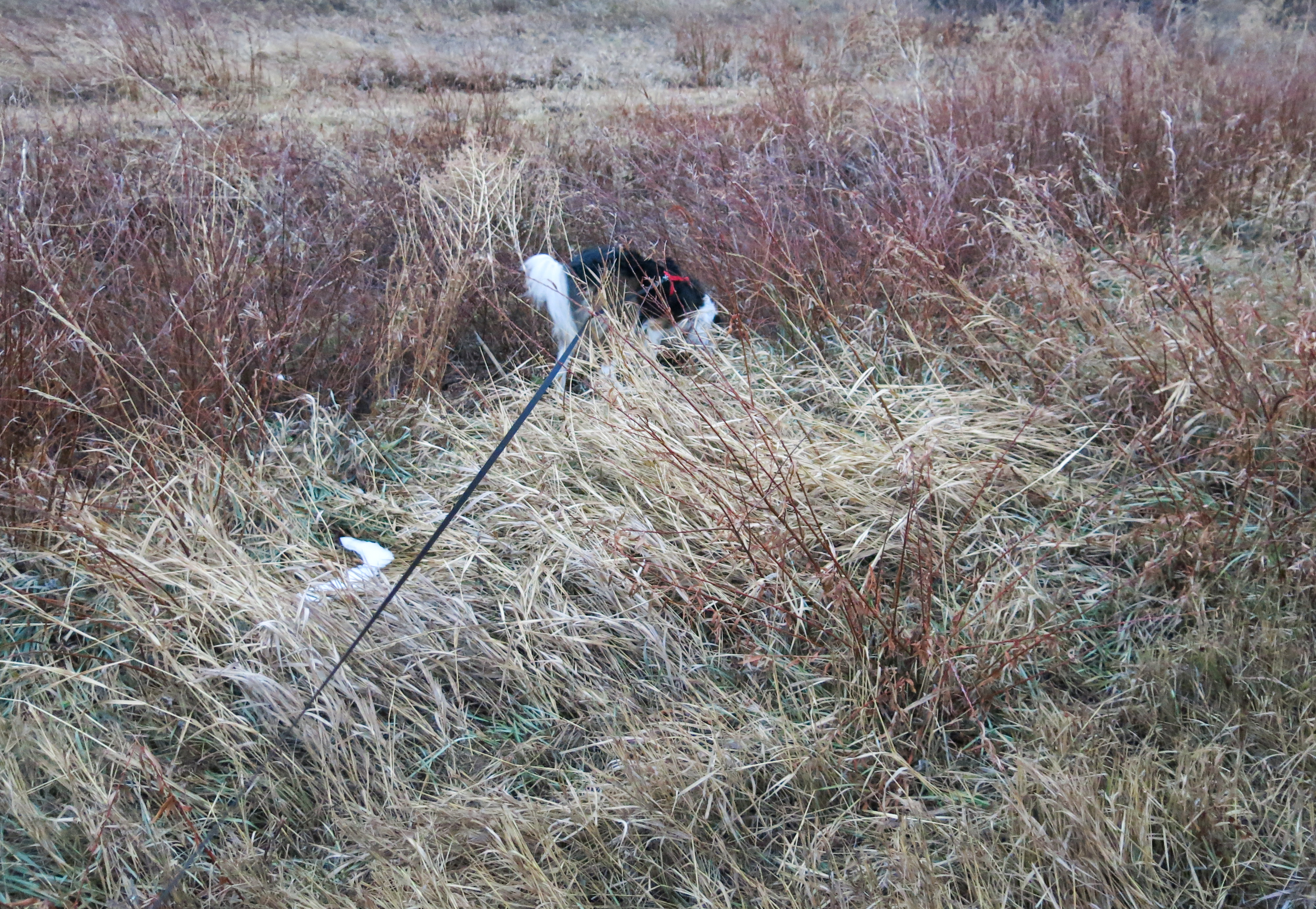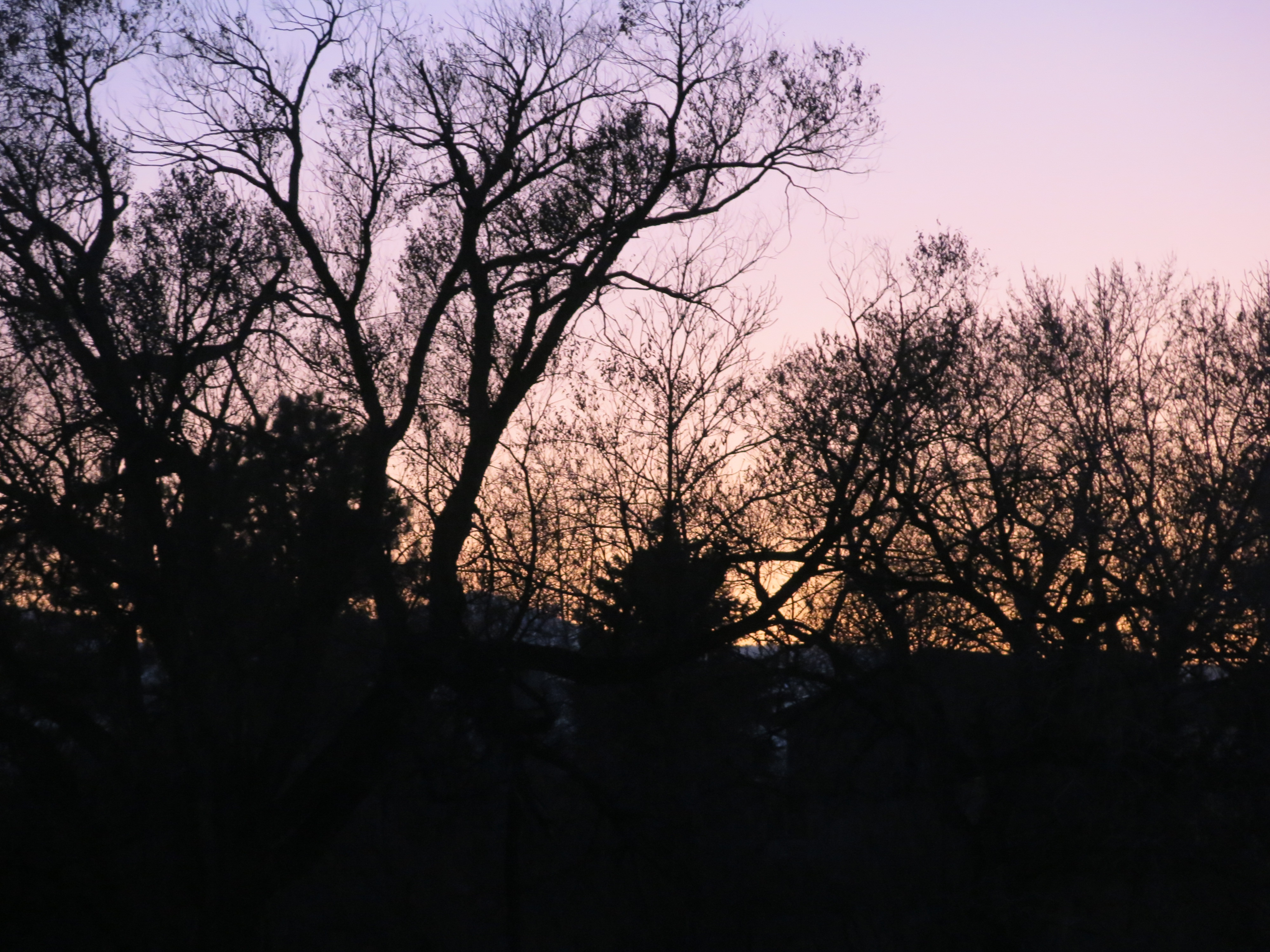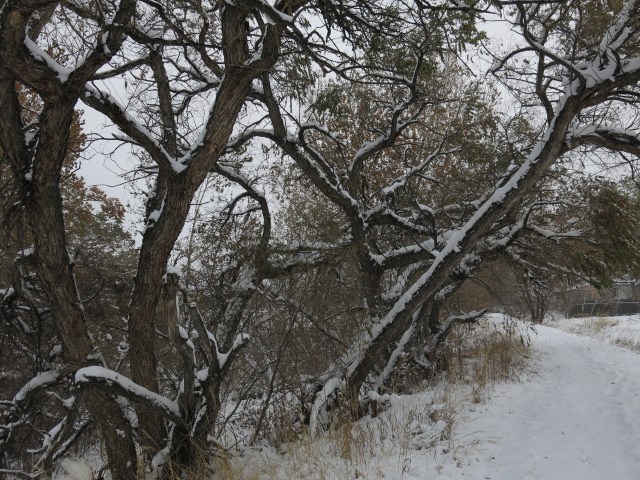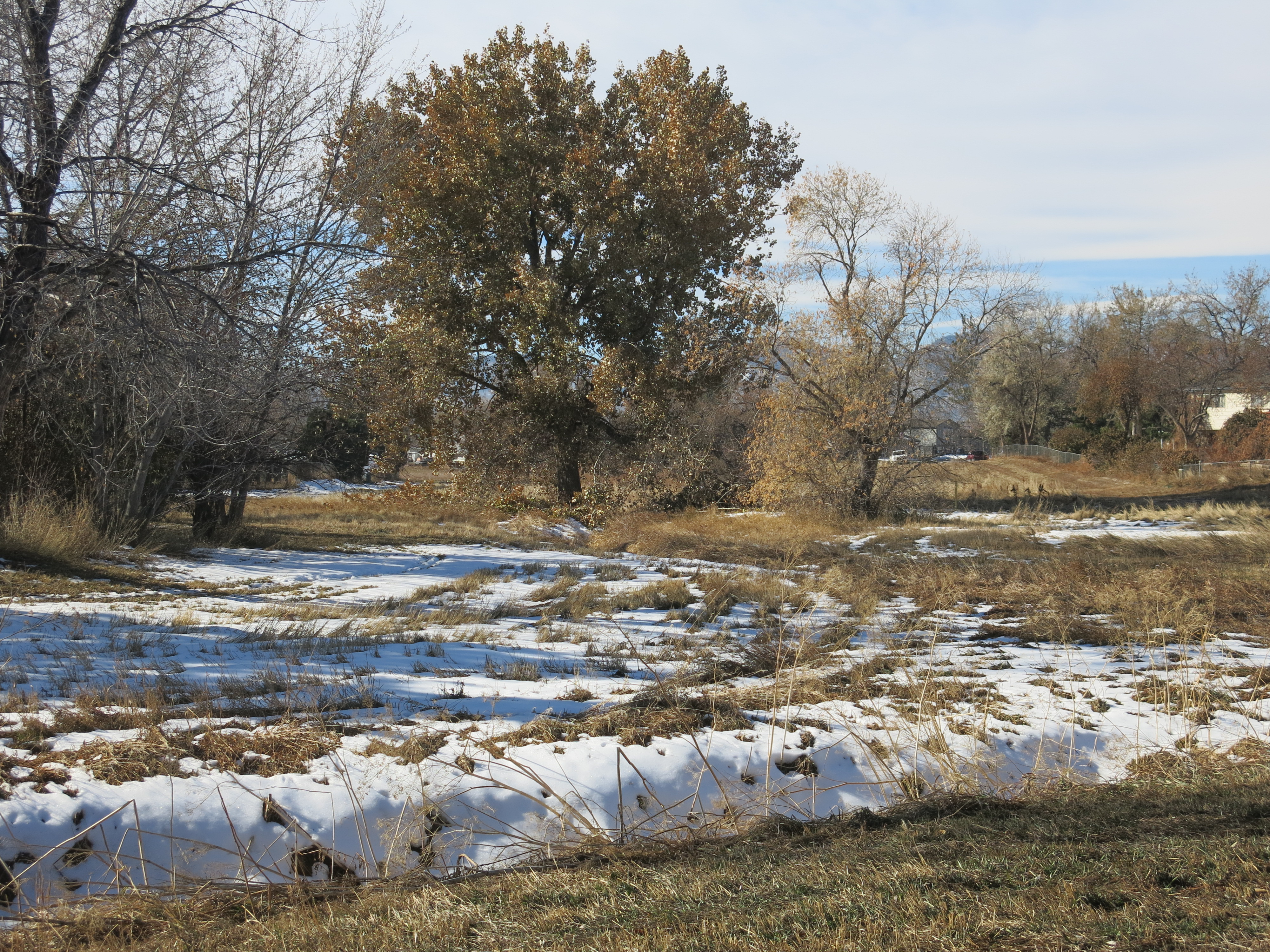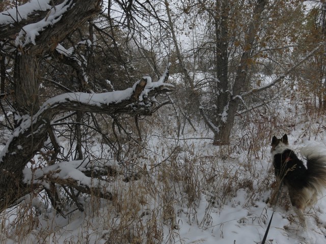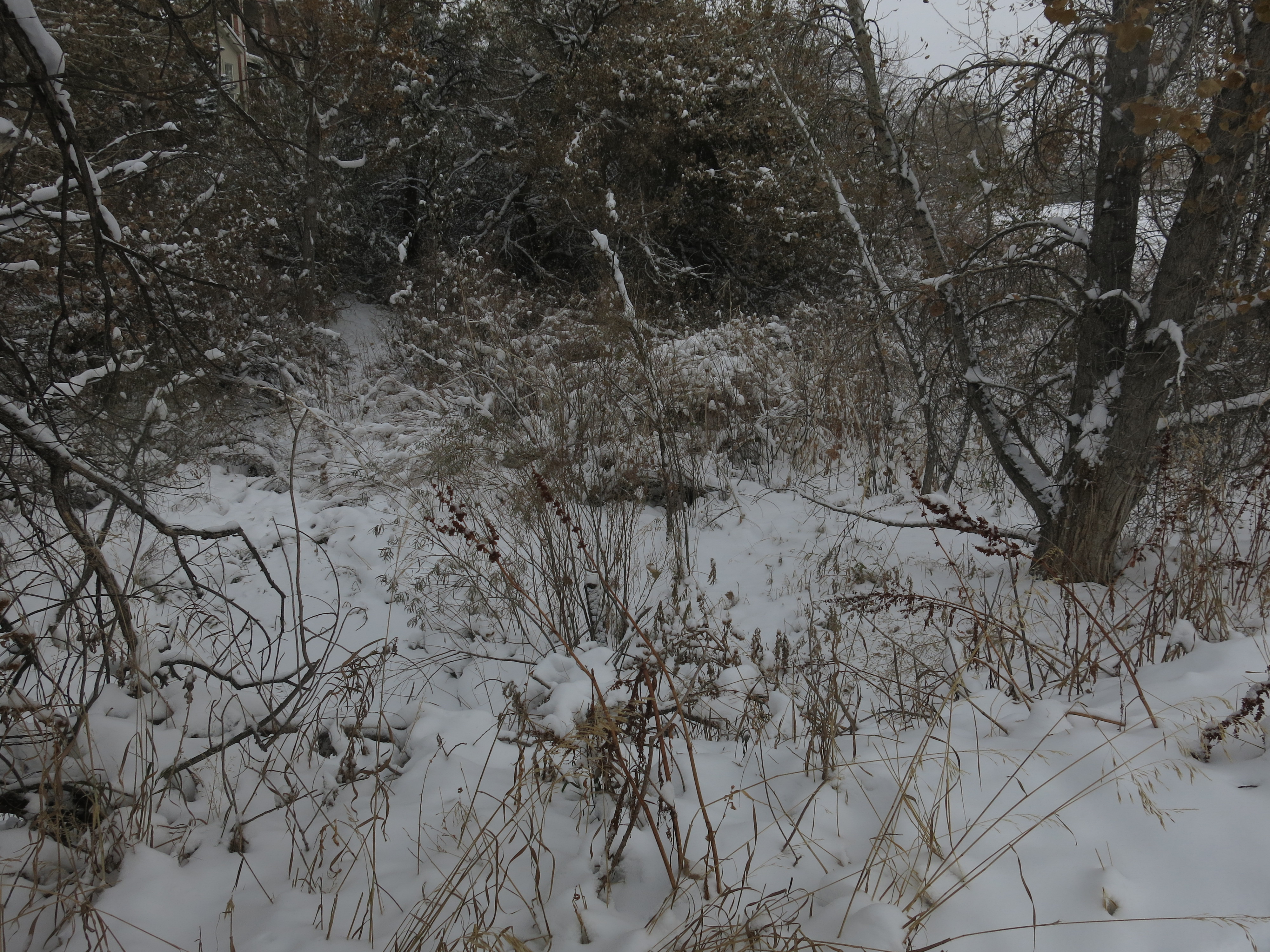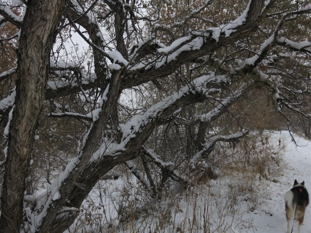 These are willows to the south of us, growing along the creek. We follow the coyote path to where it stops, for us anyway.