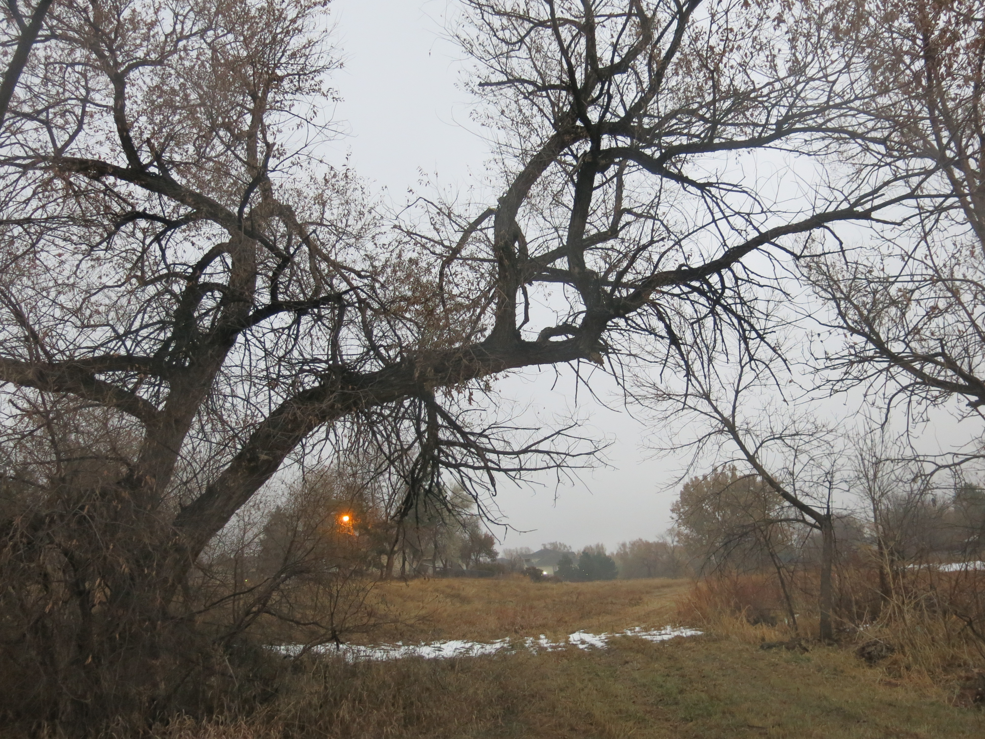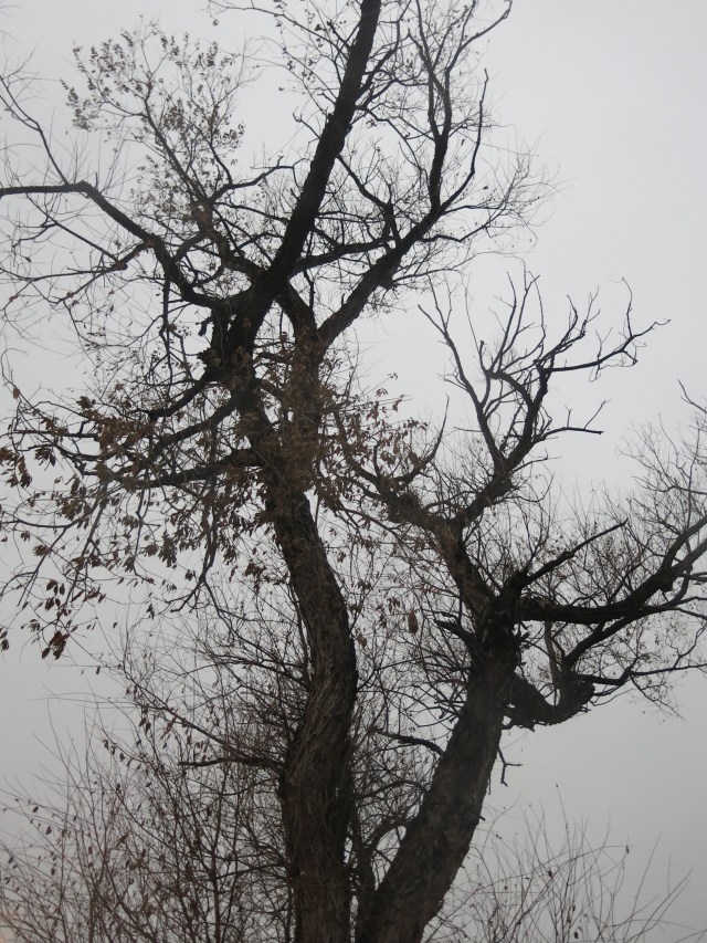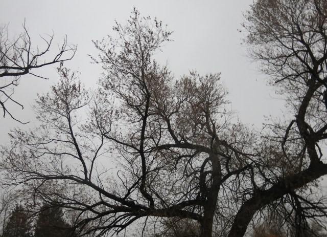 The guy I live with took a bunch more willow pictures, but this time, of willows in the mist. Some of these are pictures of the same willows, but at different angles, especially of the one that hangs way over the path on the west side of the creek, and also the one with the big broken branch, which you can see quite easily. It’s kind of scary. We don’t walk under that tree.