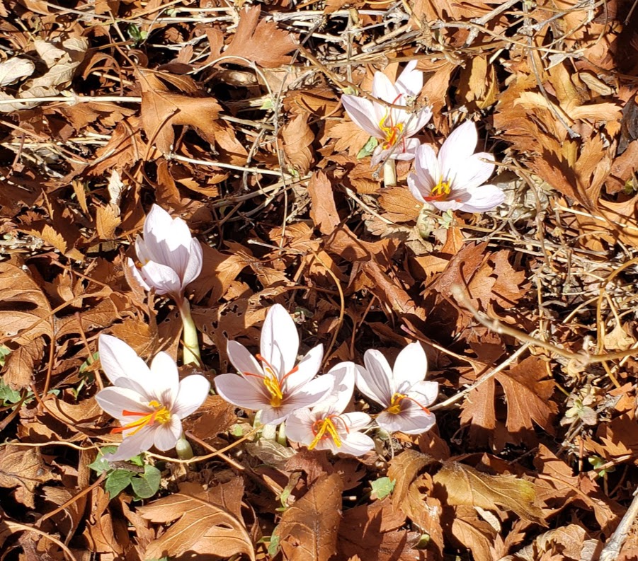 Oh, that is almost sad that they got covered up! At least they bloom on time there. I will eventually try to grow saffron crocus again to see what they do once they get established. (I left them at a home I moved away from years ago.) Heck, even if they don’t bloom on time, they were nice anyway. I don’t know if what I grew really were saffron. They sure looked like they were, but they grew like weeds and bloomed late in winter like Dutch crocus. I did not mind the first time, but when they did it the second year, it was sort of strange.