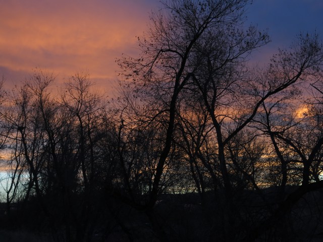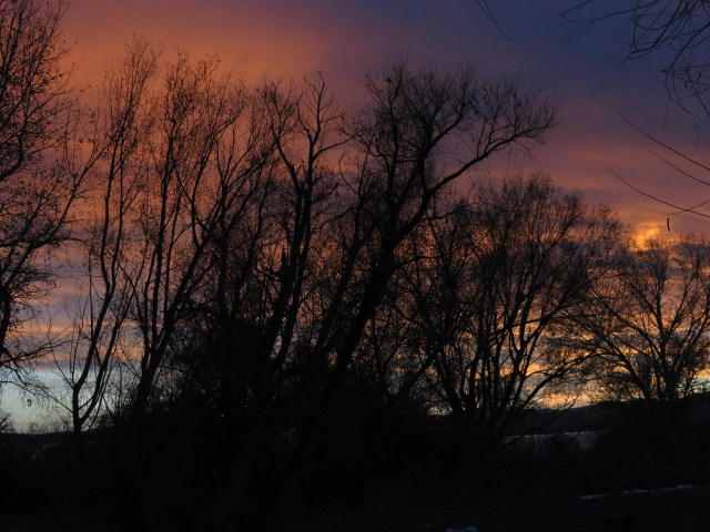 Oh, of course we heard and then saw an owl, but it wasn’t sitting in a place where we could get a good picture. So the sunset pictures will have to do.