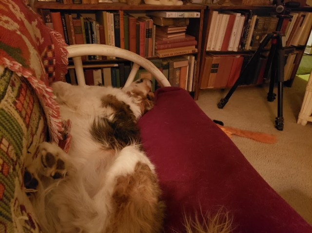 In the evening we listen to music (at least he does); he sits on the couch with me. I usually drift off.