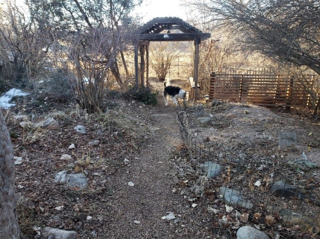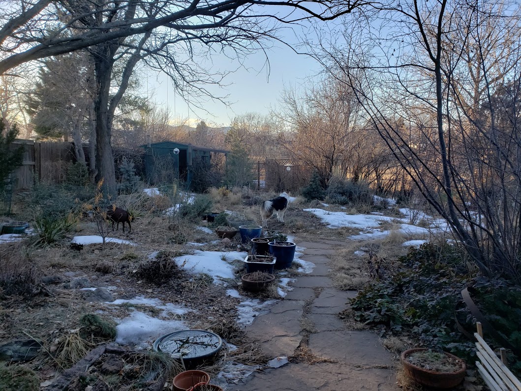 There are parts of the garden that don’t have frozen soil, but the rest could stay frozen for months. It’s going to be in the 50s for a week or so, but that won’t cause the soil to thaw or the snow and ice to melt.