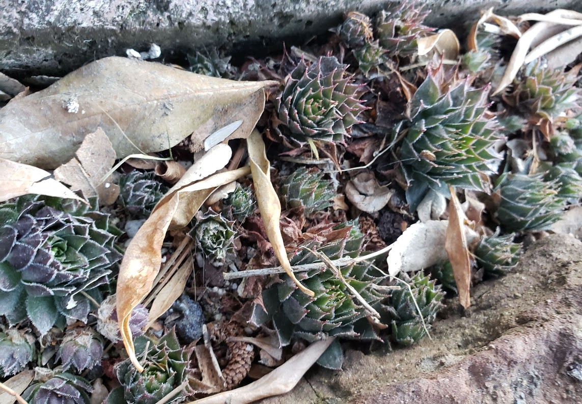 The hens and chicks are pretty cool, aren’t they? They don’t need any care at all, here.