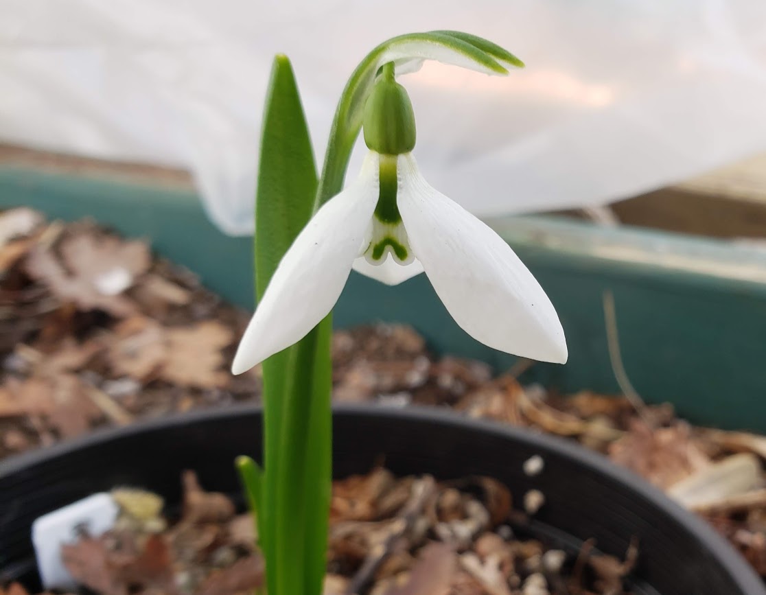 And, finally…there are snowdrops up in the garden. These are Galanthus elwesii ‘Theresa Stone’.