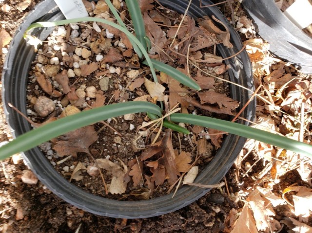 This is Galanthus peshmenii, which has been done flowering for quite some time. It’s an autumn-flowering snowdrop. You can see how long its leaves are; they come up after the snowdrop has almost finished flowering.