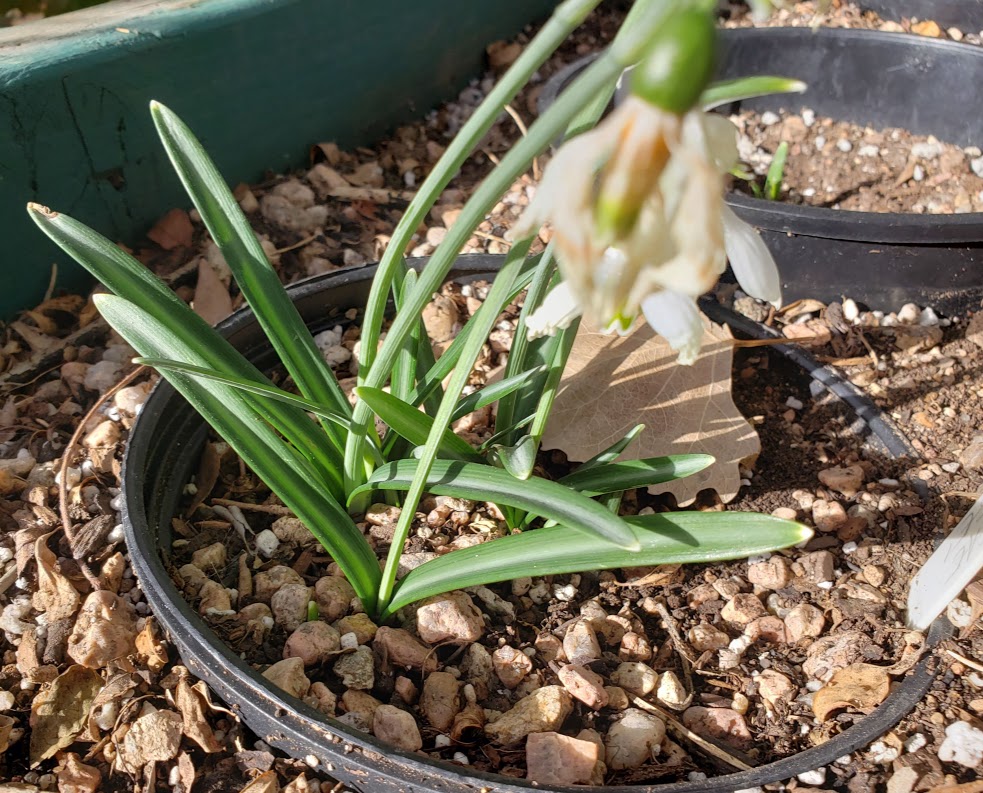 This is Galanthus reginae-olgae ‘Cambridge’, which just finished flowering after being in flower since November (which was still late for it).