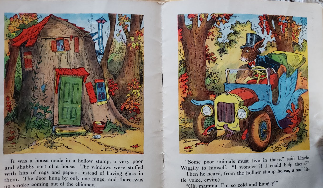 We had Uncle Wiggly books that were my father’s when he was a boy (He was born in 1920) and I read them when I was young. My brother read them to his kids when they were young and I think he still has them at his house, unless his son has them to read to his daughter. They are timeless. We also had the board game. There was one square that you landed on that said “Isn’t that provoking! Now you must take a pink card”. The pink cards had instructions or consequences to follow. Everyone in our family still makes that remark-it’s a good one.