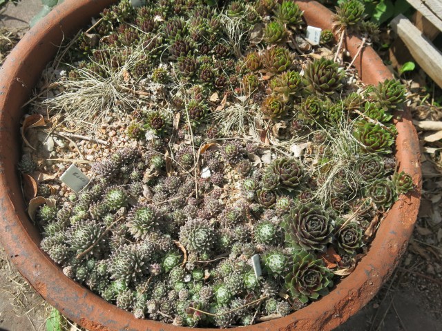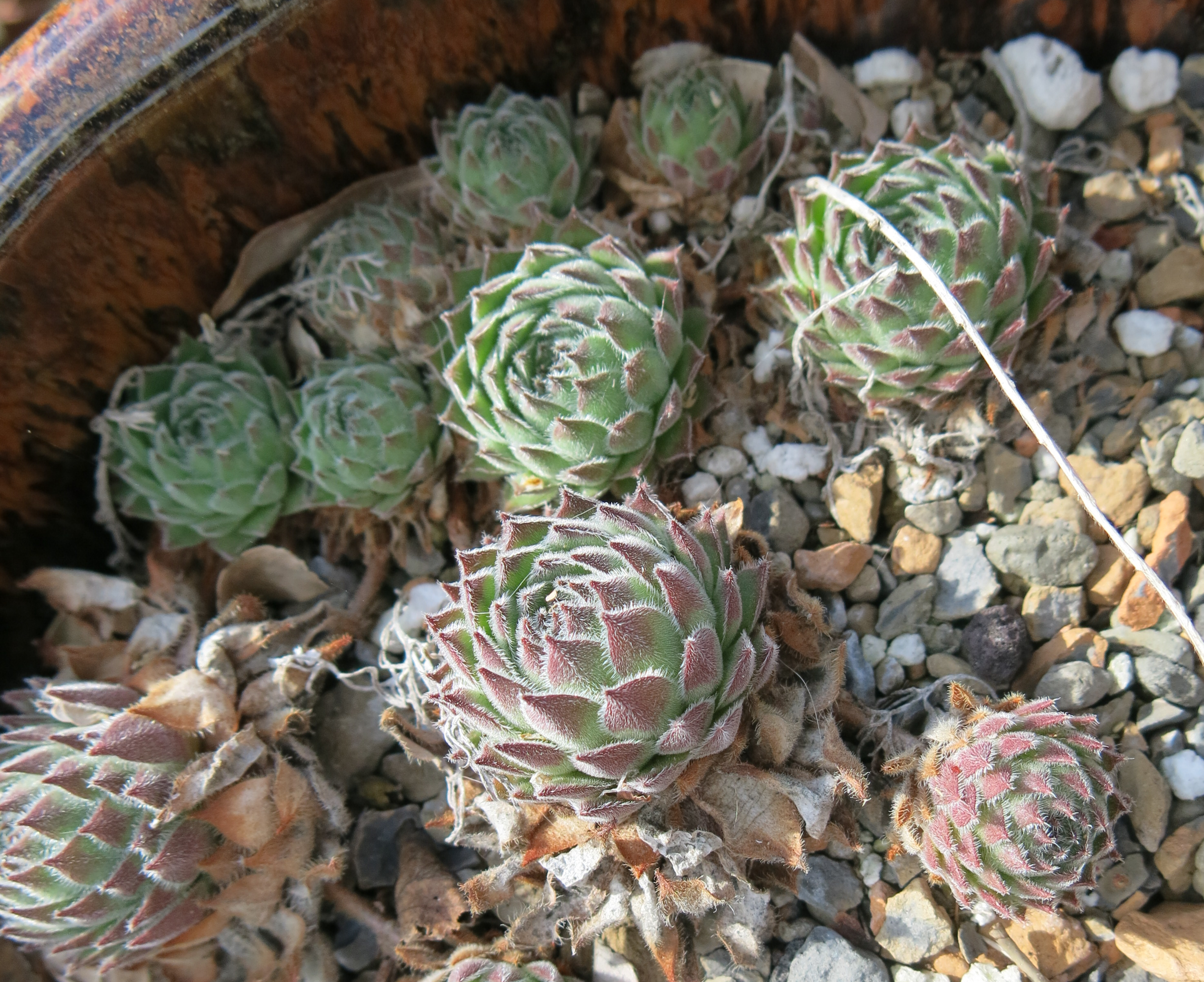 There’s probably a moral there somewhere. Maybe not. He likes taking pictures of hens and chicks. There are a lot of them here.