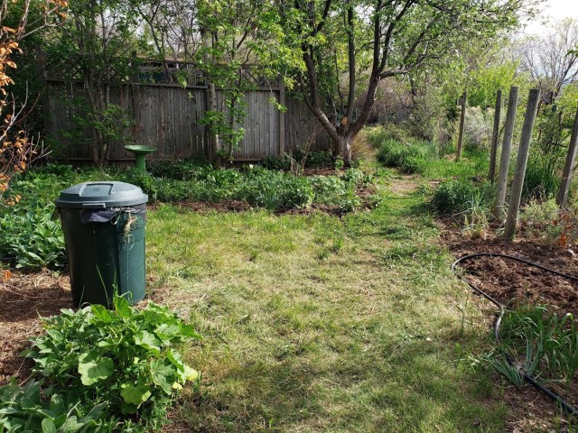 In fact, hardly anything has been going on here, except a lot of weed-pulling, and even more smooth-brome digging. The guy I live with seriously detests this stuff. But you can see some progress has been made in the “way back”.