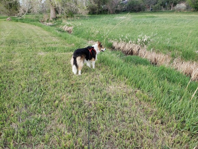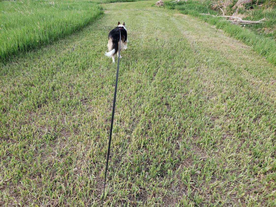 Really not much of a post. I went on my walk this evening, and a truck backfired or something on the highway. I got scared, but the guy I live with said for me not to spoil my walk, and he betterized everything by taking me into the sea of smooth brome (some of which has been mowed) so I could look for voles and stuff.