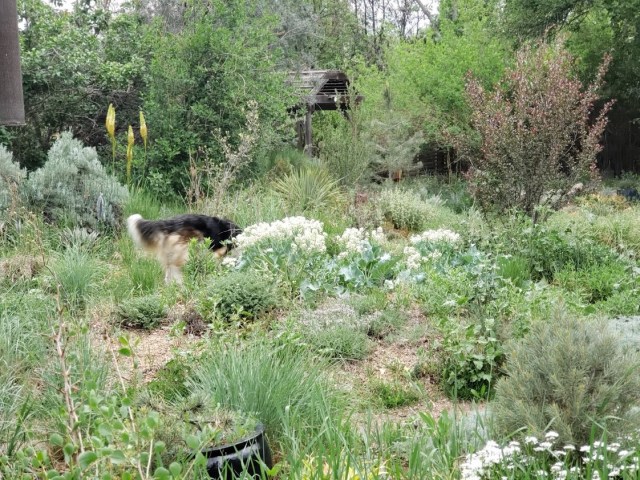 Oh, that’s seakale, Crambe maritima. I guess I forgot to post a picture of it. It’s very happy in the middle of what the guy I live with insists is a lawn.