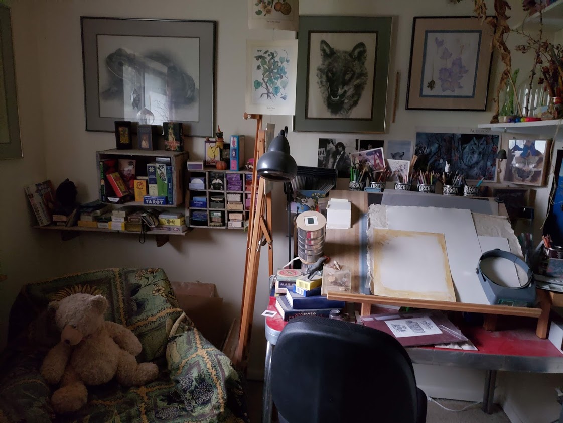 the studio is magical. i see your wife had quite a collection of tarot cards. i’ve recently begun exploring different decks myself. it’s 11 years since i lost my husband as well. time is an amazing salve. thank you for sharing.