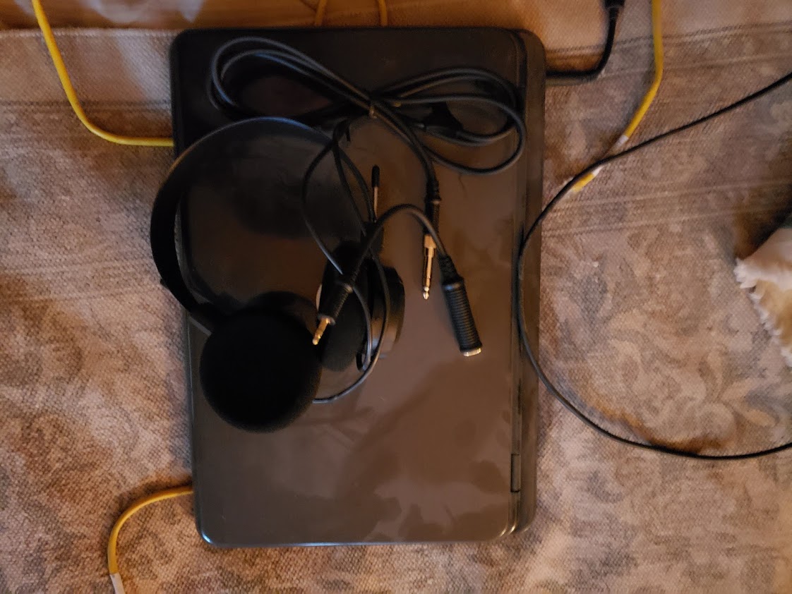 These came in the mail last week. They spent some time in “quarantine” out in the garage, and now they’re downstairs. These are the headphones. Eventually he’ll get the rest of the equipment so he can listen to the LPs.