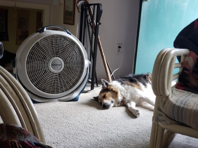 It’s gotten cooler, finally, so the fan you see in the picture above has been retired, at least for a while. Maybe until next year.