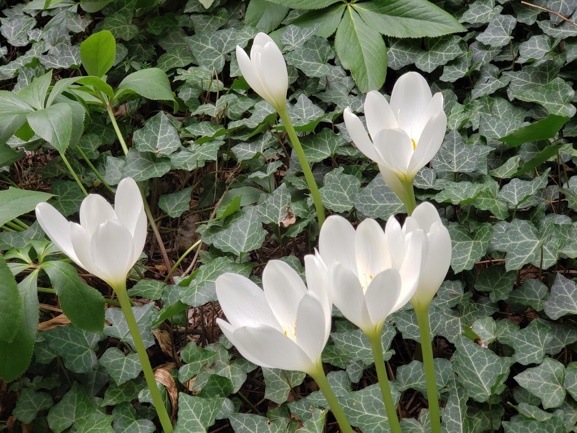 There are more things in flower now than there were. I’m supposed to post a picture of the white colchicums (Colchicum speciosum ‘Album’) because they’re been in flower longer than any other colchicums here.
