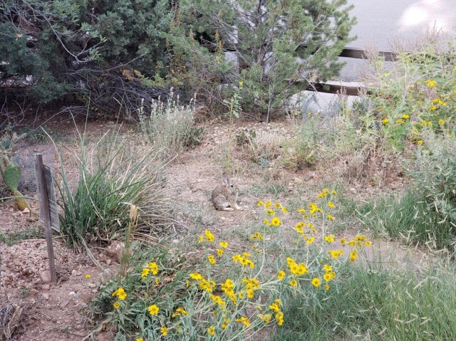 The bunny actually lives in our front yard. We let it stay, considering the terrors that await bunnies elsewhere in the neighborhood.