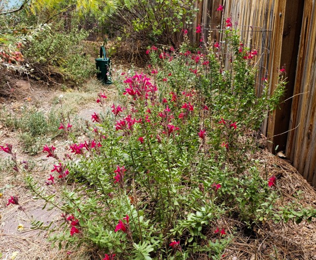 Rain from the Mexican monsoon triggers the flowering, which coincides with hummingbirds migrating to the south. The hummingbirds selected red-flowered plants, so that’s mostly what there are, though in the horticulture trade you can find white, pale yellow, pink, and purple.