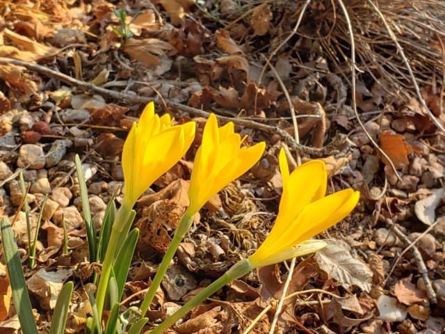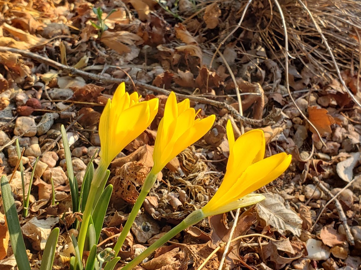 And Sternbergia lutea. This isn’t always easy to get to flower here, because it likes to be rained on, too, in order to start flowering. Maybe the snow helped, though the guy I live been has been watering, some, as well.