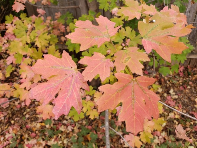 The leaves on the bigtooth maple, Acer grandidentatum, have all turned color now and will probably be gone by next week. Some years they get really red. This year, not so much.