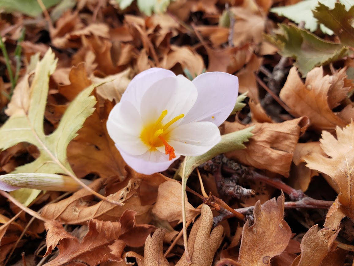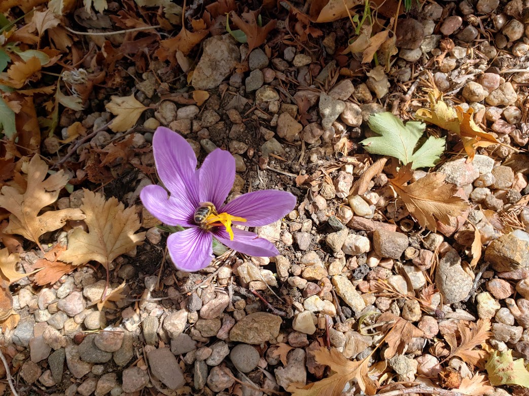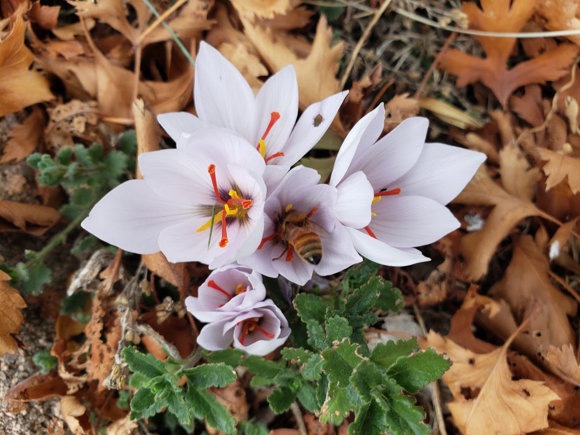 Speaking of food, there are saffron crocuses flowering in the garden. This is Crocus sativus, the cultivated saffron crocus. (The guy I live with plucked all the saffron threads and gave them to his neighbor across the street.)