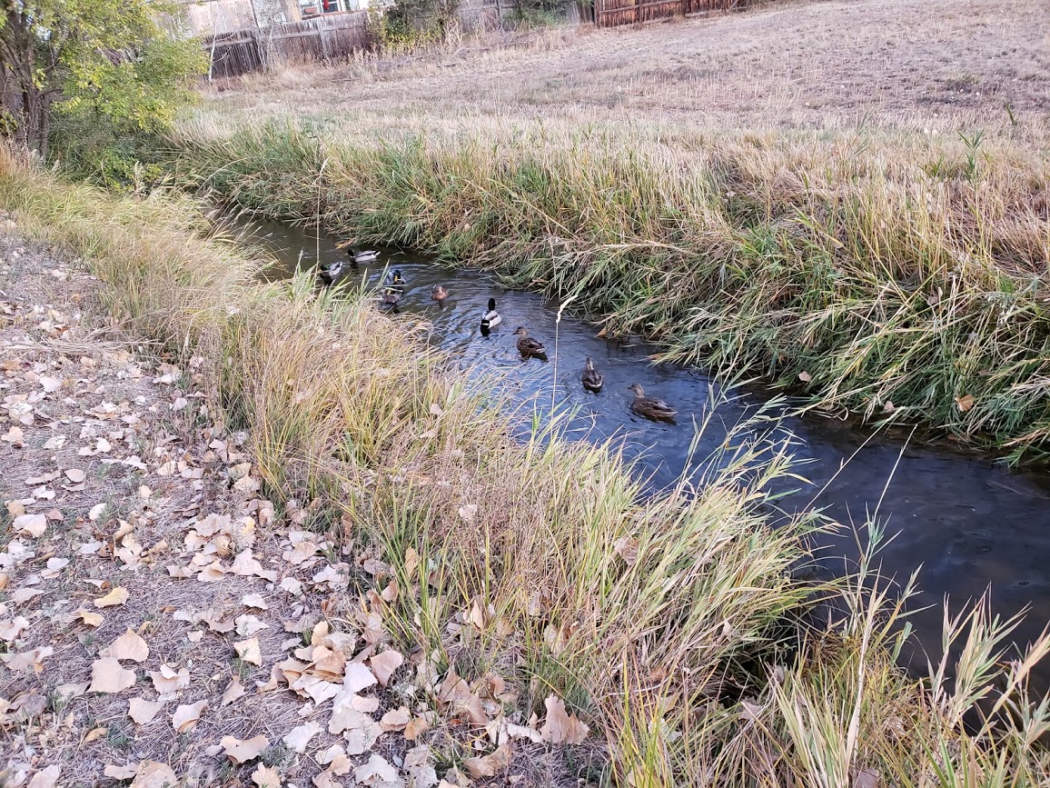 We also think there’s a muskrat again. A couple of times, late at night, we’ve seen ripples from the bank, just about where the picture was taken, out into the water, just like a muskrat would make. We haven’t seen it but we’re pretty sure it’s there.
