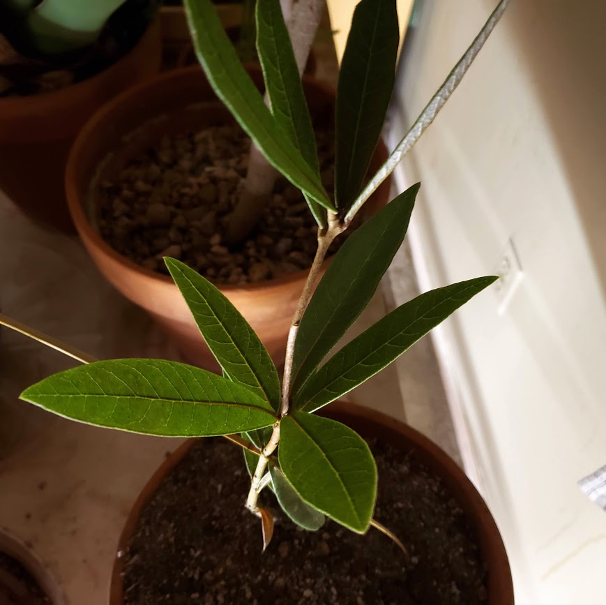 This is Quercus hypoleucoides, from southeastern Arizona, southwestern New Mexico, Sonora, Chihuahua, Coahuila, and around Big Bend in Texas. There’s already one in the garden, and the guy I live with thought we needed more. These are going to stay in the upstairs bedroom, watered, until next spring, when they can go outside.