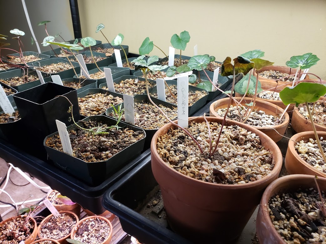 And then he discovered fungus in one of the pots of cactus seedlings downstairs. He sprinkled some Bordeaux Mixture on the pot, but a lot of the seedlings died anyway. It was the pot I showed last time. It’s in back of this one and you can see that there are fewer seedlings. The guy I live with said he didn’t need all those seedlings anyway; just some.