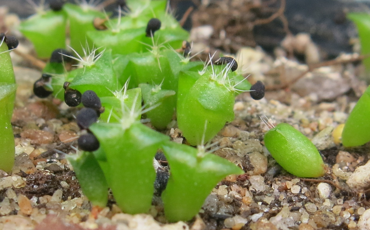 And the little cactus seedlings have grown spines. I know that sounds like a moral judgment but they actually do get spines at a very early age.Β