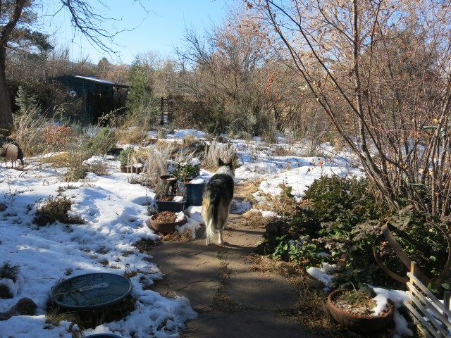 Greetings and salutations, everyone; yes, once again it is I, your popular host, Mani the purebred border collie, here today to bring you up to date on all the news from our garden, which really isn’t very much at all. You may remember me from such posts as “Forty Degrees”, among so many, many others.