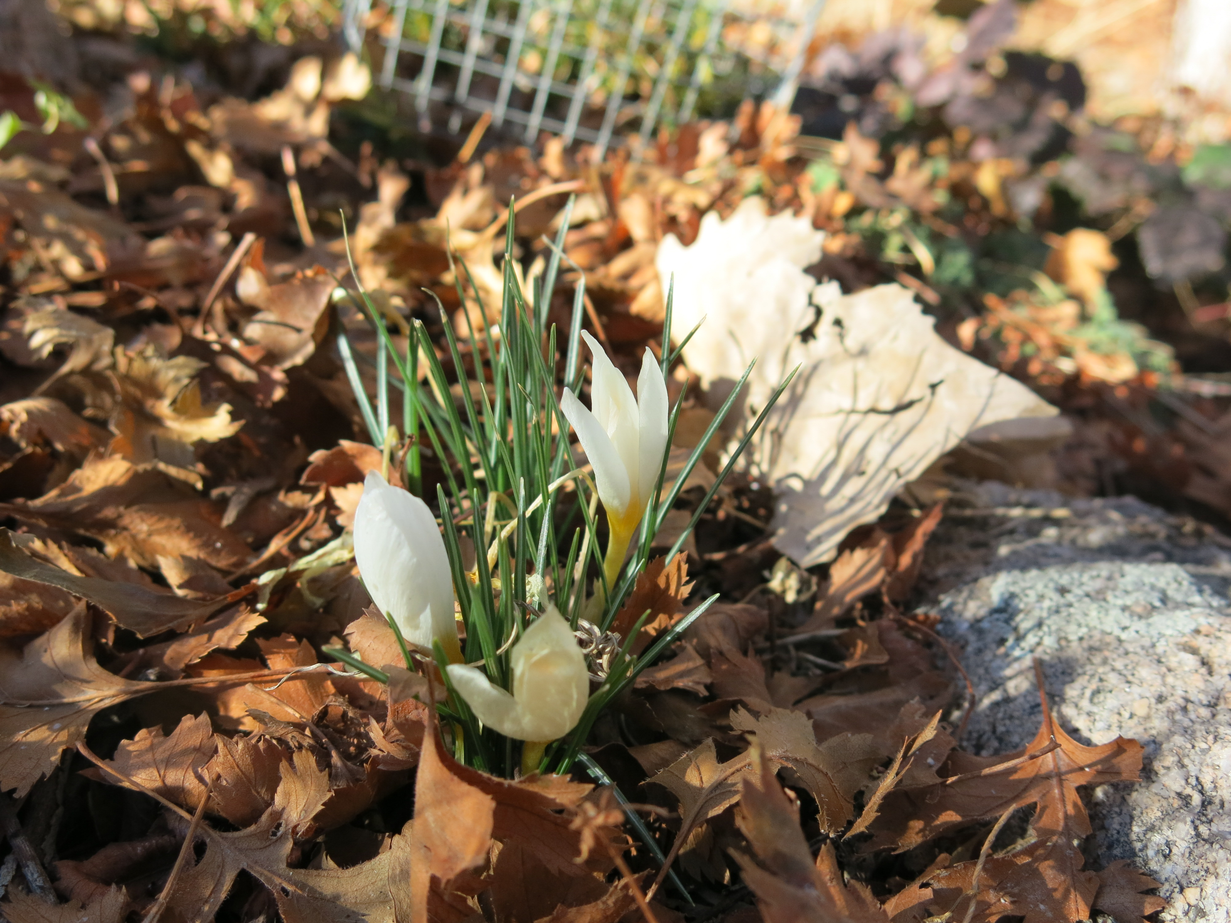That cage you see, behind the crocus, goes over the leaves so that bunnies don’t nibble on them.