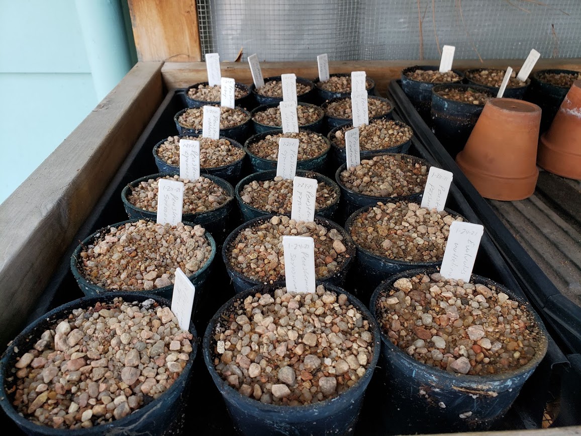 These were mostly penstemons from Alplains, which were purchased last year. The seeds are still viable, and some people say germination is even better with older seeds, and, anyway, the guy I live with has been doing hardly anything (trust me, here) for such a long time, it was a relief to see he could function at all.