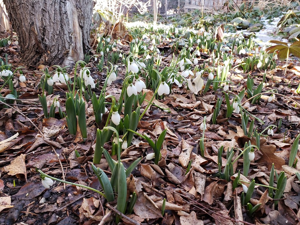 And, you know, there are snowdrops. Like the picture in the “header”. There are a lot of them. Some of the flowers were damaged by the cold, weekend before last, and maybe the display won’t be as good as in previous years, but the snowdrops seem unfazed by the very cold temperatures. (The soil doesn’t freeze in this part of the garden, by the way.)