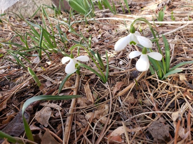 So, now, there are bulbs in flower. Even snowdrops, still. This is Galanthus nivalis. It wasn’t planted; it just appeared one day.