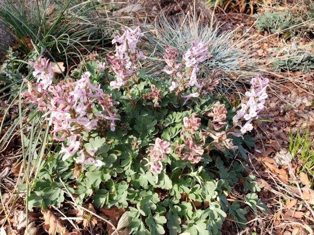 Some corydalis are flowering, too. You can see that some of the flowers got frozen on this one. I guess that’s okay. These corydalis have started seeding around, which the guy I live with says is “totally excellent”.