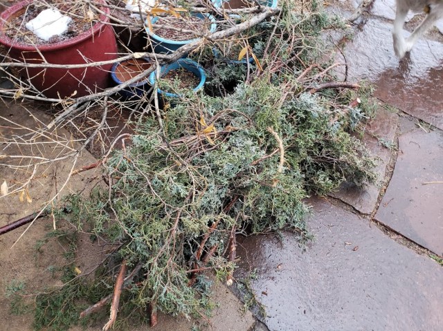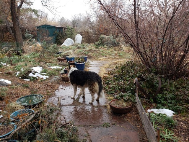 The guy I live with is mostly all talk, of course. But he does not like the weather here. I mostly do, but I get disappointed when I can’t go out and help in the garden.