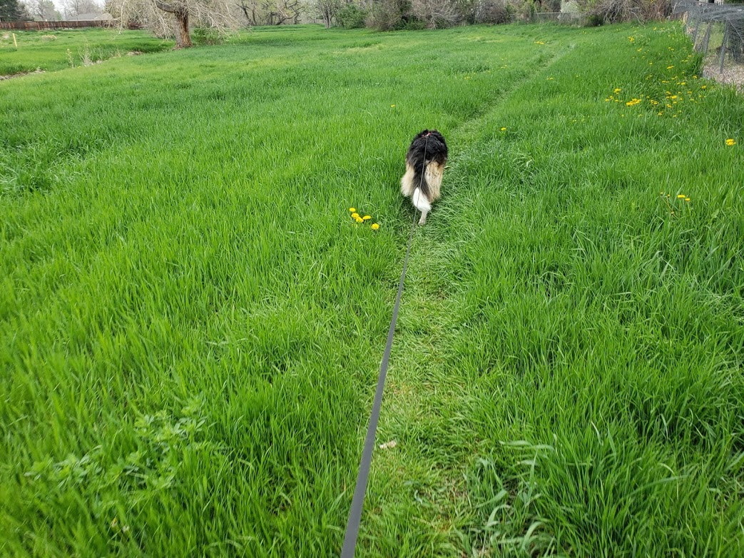 I can walk on the coyote path, but the grass is really tall now, and wet.