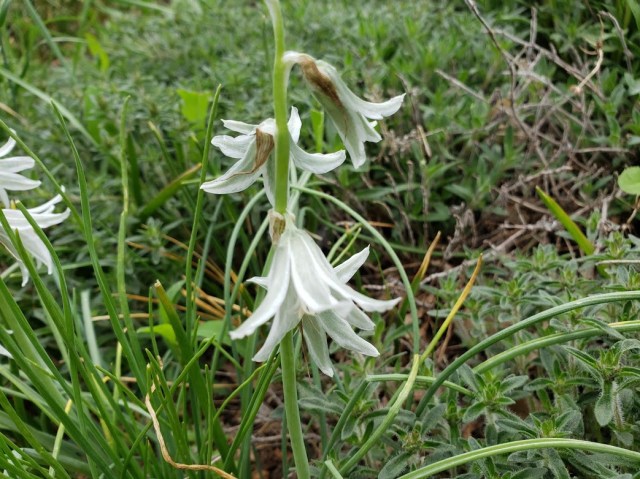 This is Ornithogalum nutans, which Graham Stuart Thomas called “a study in oyster-gray and soft green”. The guy I live with likes this plant a lot, but it doesn’t seem to be all that happy here.