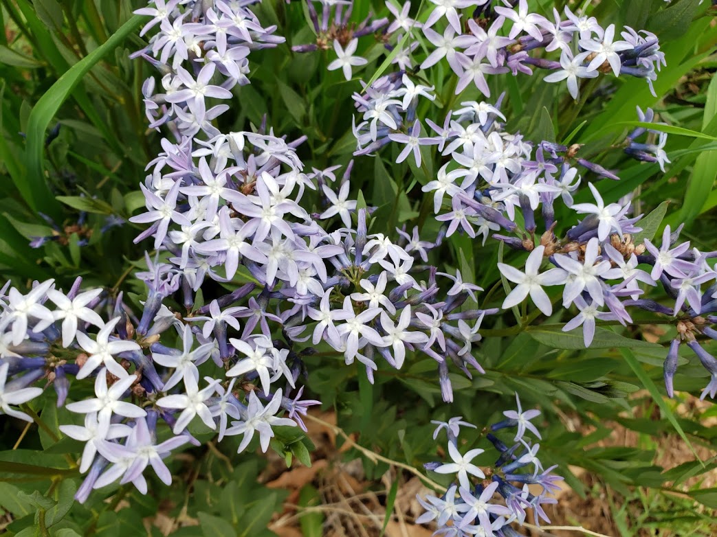 And Amsonia jonesii, flowering in the front yard. The clump is one-third the size it used to be, but it was run over by the backhoe when the sewer drain was replaced.
