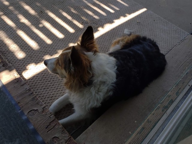 Greetings and salutations, everyone; yes, once again it is I, your popular host, Mani the purebred border collie, here today to tell you all about our scary visitor. You may remember me from such posts as “A Little Excitement”, among so many, many others.
