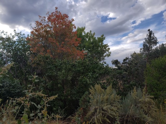 You can see here that the Acer grandidentatum is turning color. Not as spectacularly as in some years.