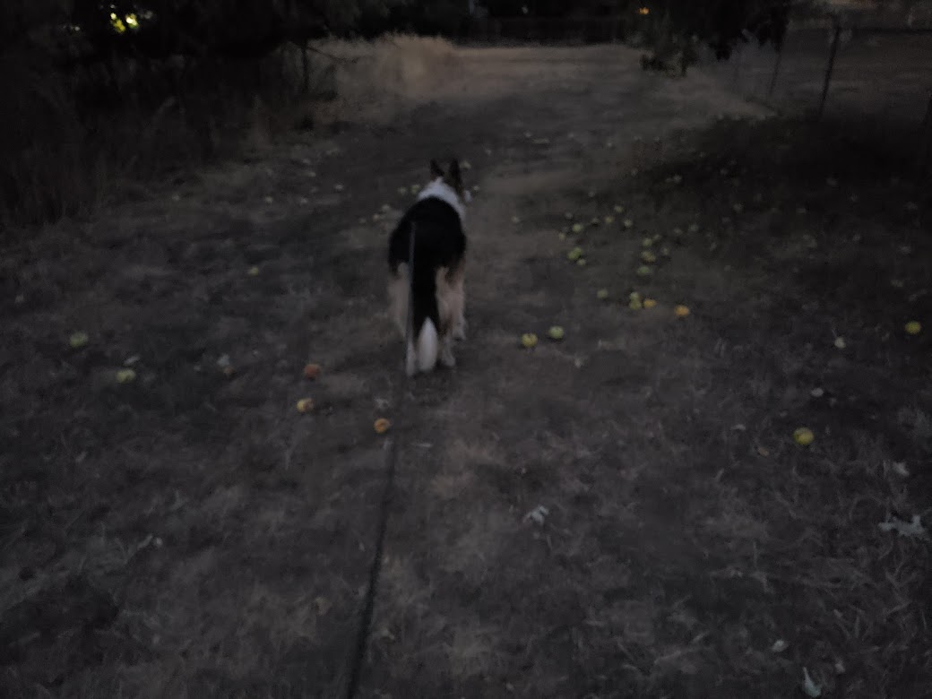The guy I live with posted a picture of me walking among fallen apples, on Facebook, but I’ll leave you with another, much more atmospheric one taken this evening.