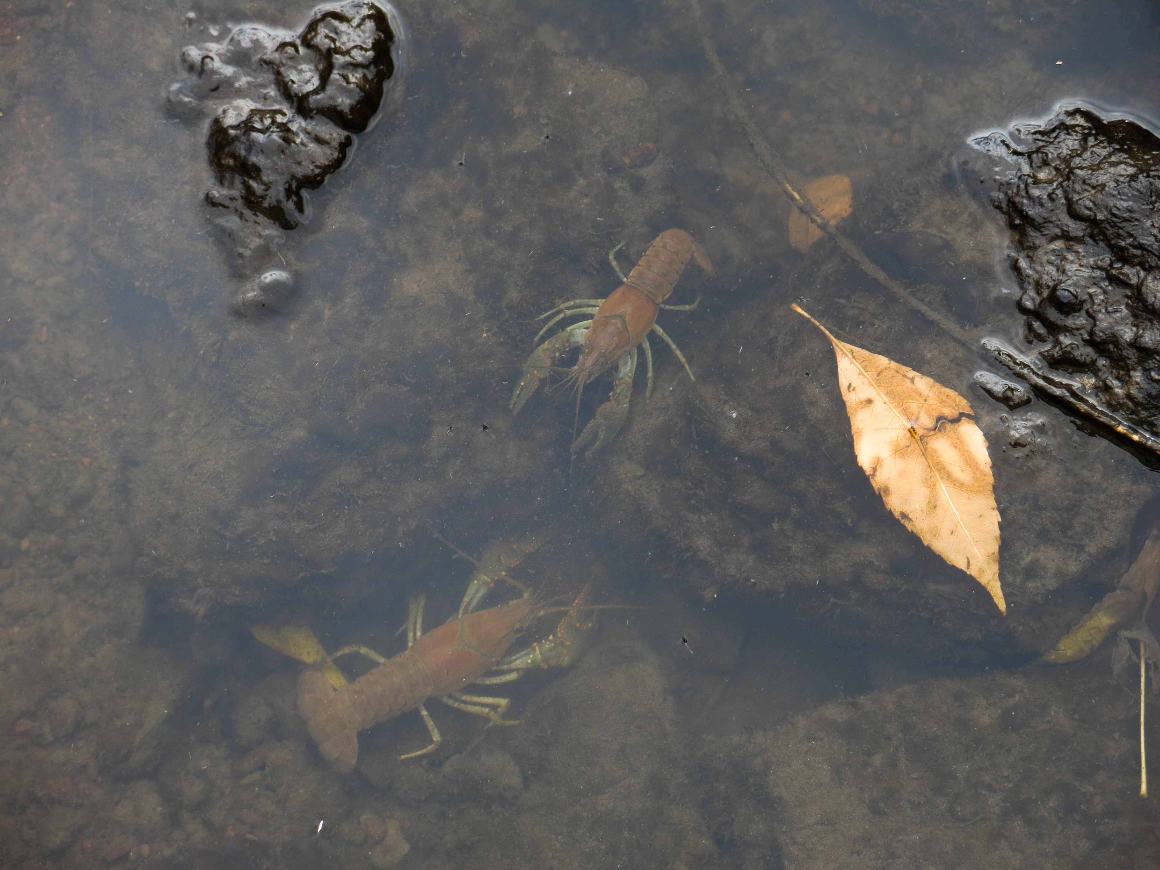 There were fish in the canal, but I think someone, or something, caught them. And we also saw crawdads. There were a lot of them in what was left of the water in the canal.