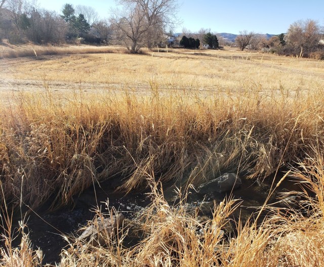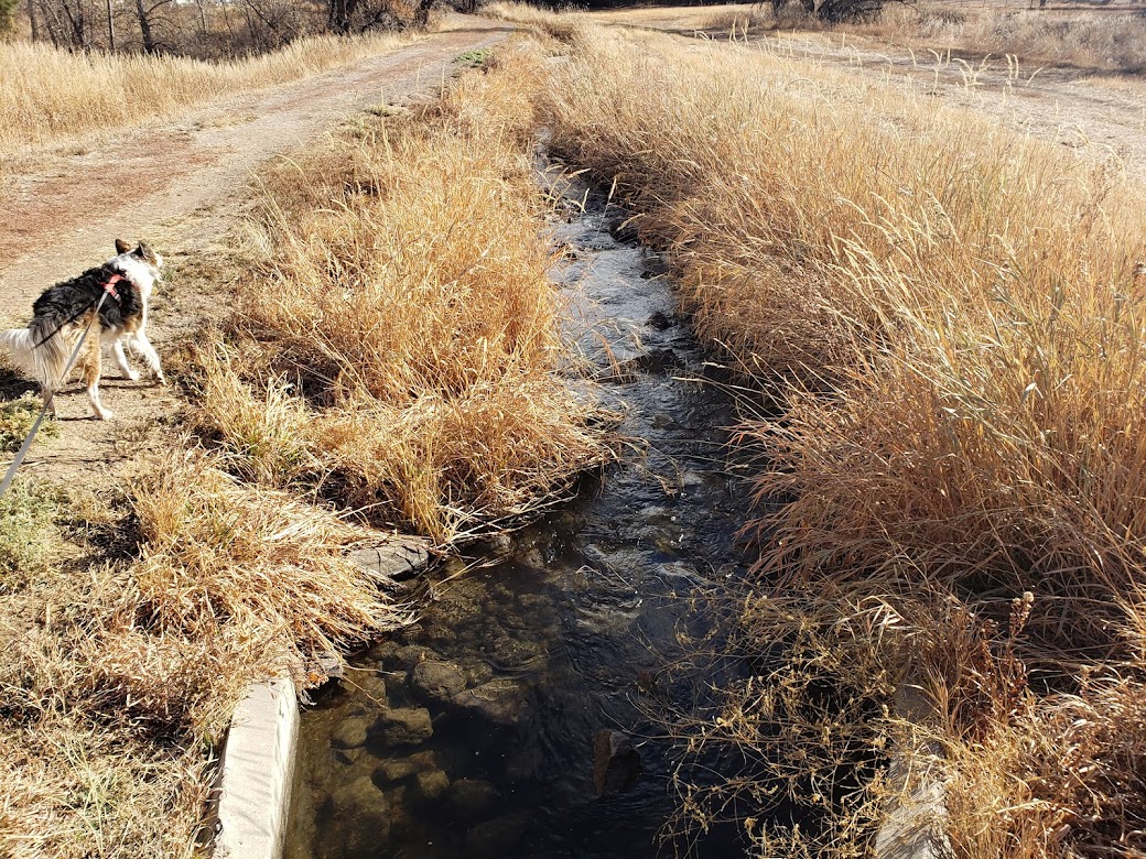 It is controlled. It’s an irrigation ditch, not a canal, though the guy I live with says “canal” sounds more romantic than “ditch”. He’s looked on Google, satellite view, to see where it goes. “Somewhere east of here”, he says. There are a couple of what he thought were called sluices, but maybe there’s another word for them, concrete on both sides of the canal, with a steel gate to release water, for old farm houses. One of the houses is still here. There was an old foundation for the other, but it’s gone now.