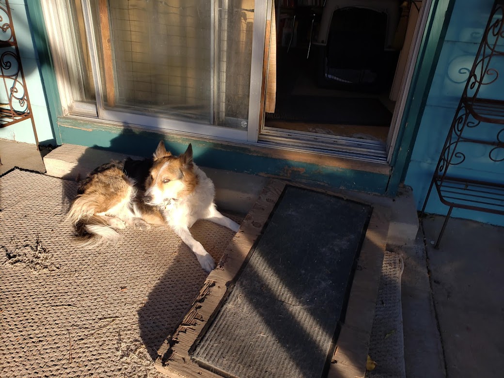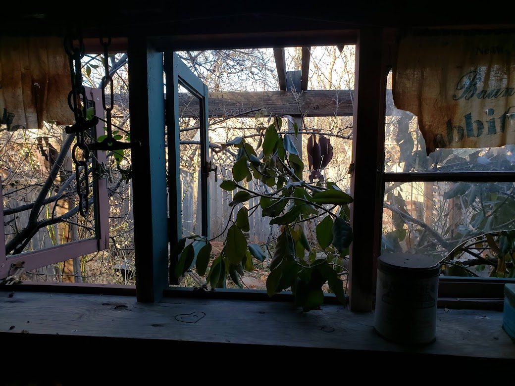 I suggest some of that thinking the guy you live with engages in is really insight. Insight takes a long time of thinking, usually, or sometimes it comes all in a bright burst. I am also reminded by your characteristic photo that you give great major side-eye, dear dog, most likely because you are in the presence of someone who does a lot of thinking when he thinks. The photo of the shed interior I am taking as a holiday card from you, filled as it is with sentiment and love. The Solstice is near upon us.
