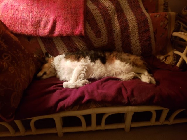 I’ll leave you with a picture of me settled in on the couch, as ancient as the olla, but much creakier and cozier.
