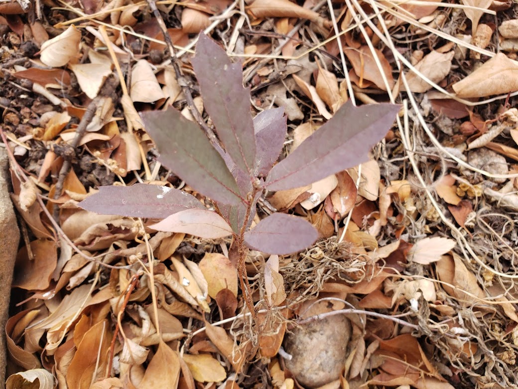 It was grown from acorns collected in Palo Duro Canyon in Texas, and has grown maybe three leaves since it was planted about ten years ago.