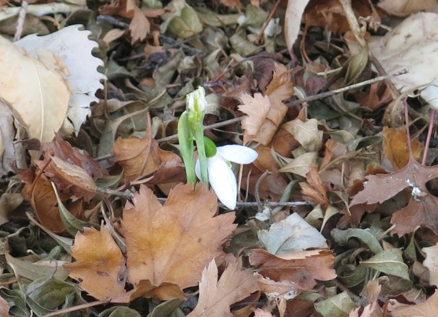 There’s a snowdrop in flower here. One called ‘Barnes’. This was planted some years ago but the guy I live with found the bulb lying on top of the ground this summer, and it was replanted.