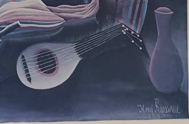 He has the book The Banquet Years by Roger Shattuck, who noted the “anticipation of cubism in the lower right-hand quarter” of the painting. His wife read the book and loved it. Every time he looks at that painting it reminds him of her enjoying the book so much, and the anticipation of cubism.